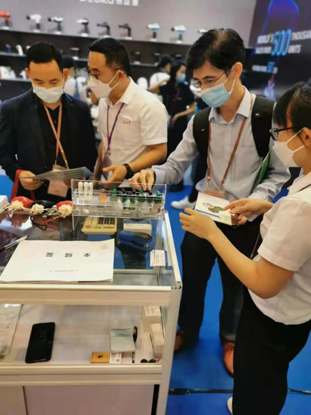 景岳堂藥業(yè)組織參加了這次展會?,F(xiàn)場展出了中藥材、中藥提取物、顆粒劑、中成藥搽劑以及大健康產(chǎn)品。在展臺前,景岳堂工作人員向客商介紹了公司產(chǎn)品,并將產(chǎn)品上傳到云端,同步展示給因疫情無法現(xiàn)場參會的客商們。